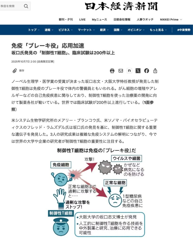 Just the other day, we received some exciting news! Professor Shimon Sakaguchi of Osaka University was awarded the Nobel Prize in Physiology or Medicine.