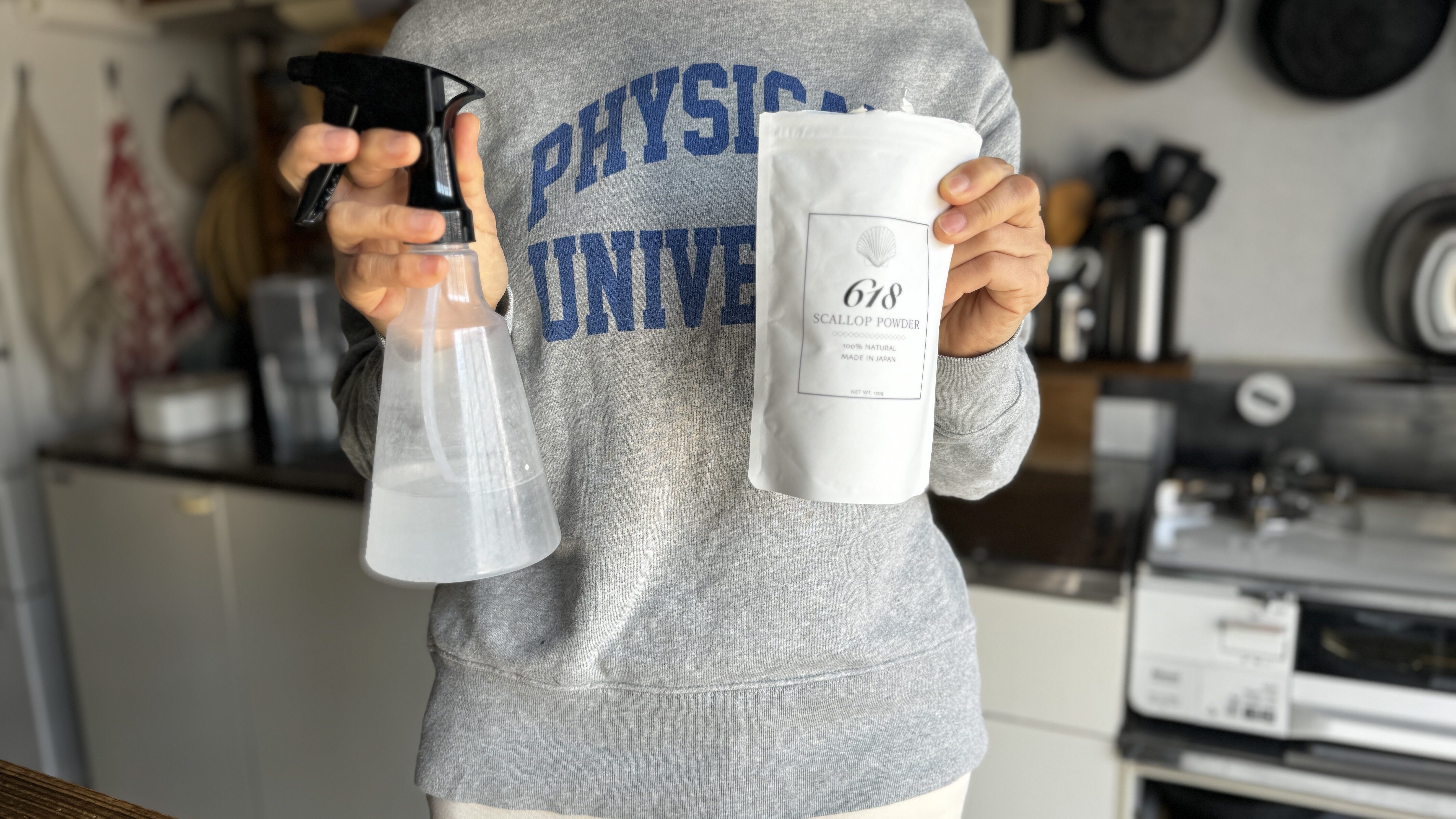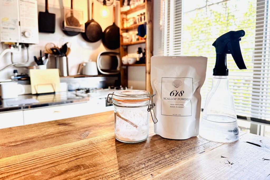 First, put the scallop powder into a spray bottle to make a handy " scallop spray ." With this, you can easily clean and disinfect anytime.