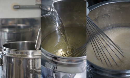 We also paid particular attention to the manufacturing method. It is the "kettle cooking method" that has been used since the Edo period. This traditional method requires artisanal skill and time, and is the polar opposite of the modern "cold process method" that emphasizes efficiency. Complete saponification leaves no unreacted fats and oils, and the moisturizing effect of natural glycerin is maintained. A month of natural drying creates a dense soap.