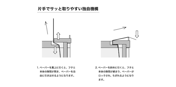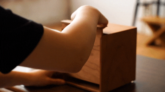 So, by combining the fastening techniques of joinery artisans of Echizen lacquerware, a traditional craft from Sabae City, Fukui Prefecture that has been around for 1,500 years, with modern art, a new concept in roll paper case was created.