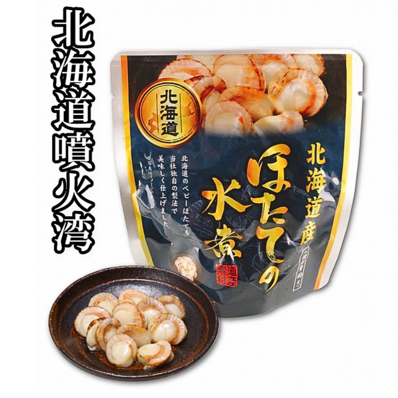 Fresh baby scallops caught in Funka Bay, Hokkaido, are gently seasoned with just salt and stewed until plump and tender.